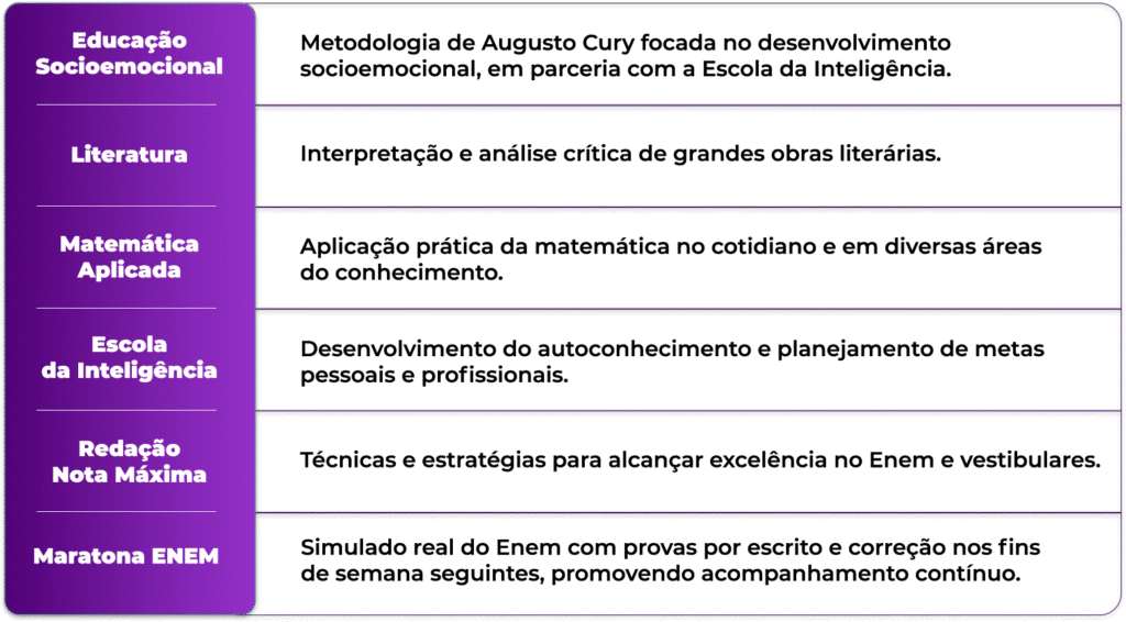 No Ensino Médio, as aulas diversificadas são pensadas para proporcionar uma formação integral e preparar nossos estudantes para os desafios acadêmicos e profissionais. Confira: